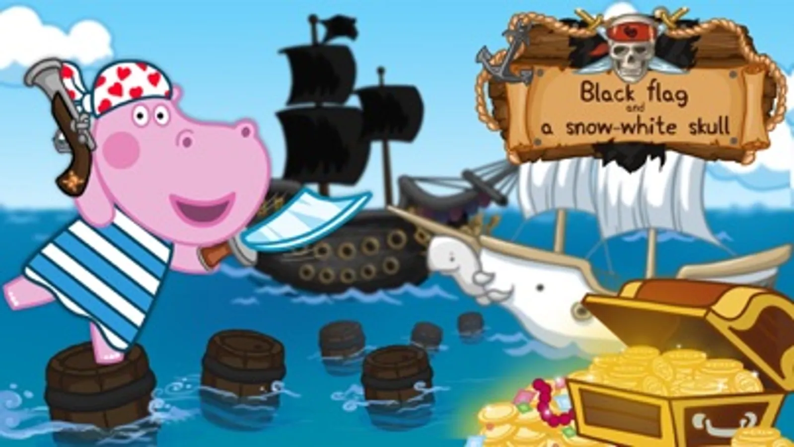 Have you heard the story about the ghost of a captain's daughter? Bad pirates caught her and landed at the deserted island. But a magic whale decided to help! And captain's daughter became the captain of the ghost ship to teach crafty pirates a lesson. Black flag and white sculp is an old fairytale with modern elements!
