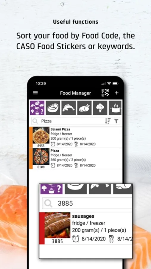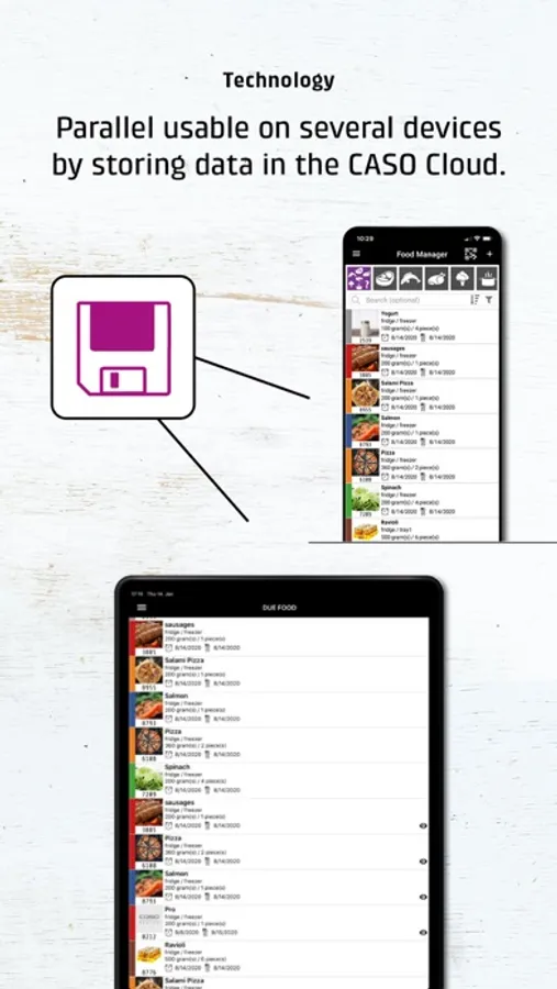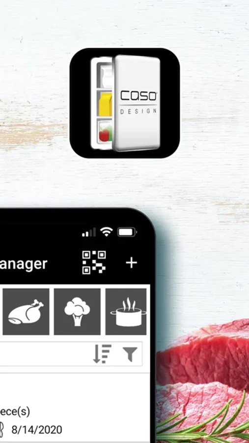 Depending on your request, the app will remind you before a best-before date is reached to avoid food waste in your home. By using original CASO vacuum bags with included QR labels youl can even improve the using comfort of this app. Just seal your food, place the QR label and import in into your food manager app. Of course all stored foods can be shared with your friend and family via Whatsapp. Maybe to plan the next kitchen party?!