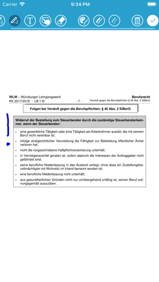 Der Nutzer von „WLW Biblio“ hat die Möglichkeit, in den digitalen Materialien Markierungen, persönliche Kommentierungen und Einfügungen vorzunehmen, die für ihn dauerhaft sichtbar bleiben.