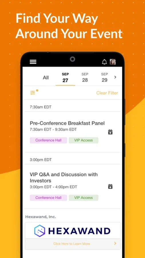 To get started, download the app and enter the unique event code provided by your event organizer.
