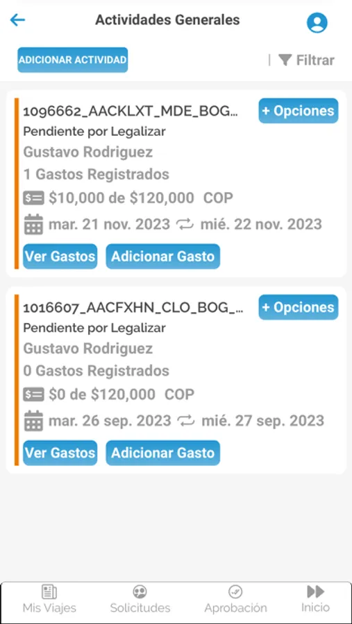 Legalizacion de gastos: Permite realizar la legalizacion de gastos y ser enviados a su aprobador.