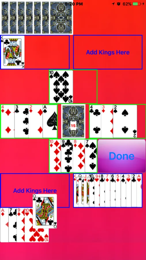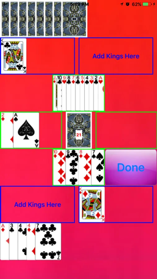 This version of Kings in the Corners is played with 2 people, you versus the Computer.