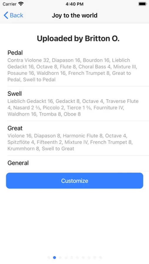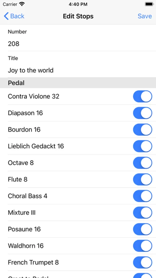 Pipe organs have long been a traditional part of religious hymns and other songs due to their ability to control an entire orchestra from a set of piano-like keyboards. Each instrument of this orchestra can be turned on or off through a series of buttons or plungers known collectively as stops. The number of stops on even a simple organ can easily intimidate a new player. The organist knows that there are many possible combinations, but only a select few will do the song justice. Organ Stops was created as a way for organists to view and share the registrations they use for a variety of hymns. Anyone can simply look up the hymn they want to play and see a full listing of organ stops that should be used. Users who create a free account can also add their own registrations to share with others. Now every organist can play like a professional.