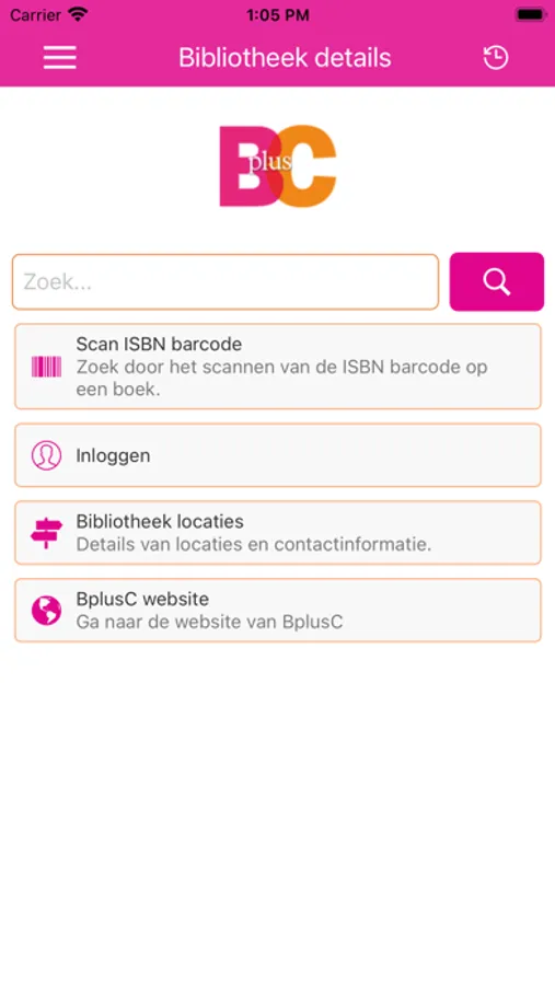 Gebruik de app om te zoeken en te reserveren in de collectie van de BplusC bibliotheken. Heb je een boek bij de hand, dan kun je door het scannen van de ISBN-barcode kijken of de BplusC het in bezit heeft. Je kunt boeken reserveren, uitleningen verlengen en een verlanglijst aanleggen. Verder geeft de app informatie over adressen en openingstijden van alle BplusC bibliotheeklocaties en kun je ze rechtstreeks bellen of e-mailen. Ook kan je abonnementen van bijvoorbeeld familieleden koppelen om ook deze uitleningen te beheren. Tenslotte kun je je aanmelden om notificaties te ontvangen wanneer er een reservering voor je klaar staat of wanneer de vervaldatum van je uitleningen nadert.