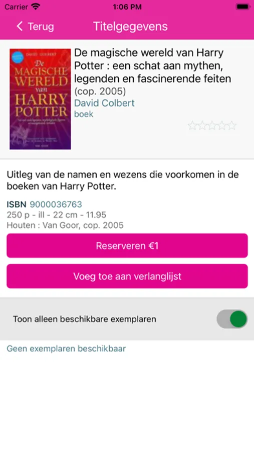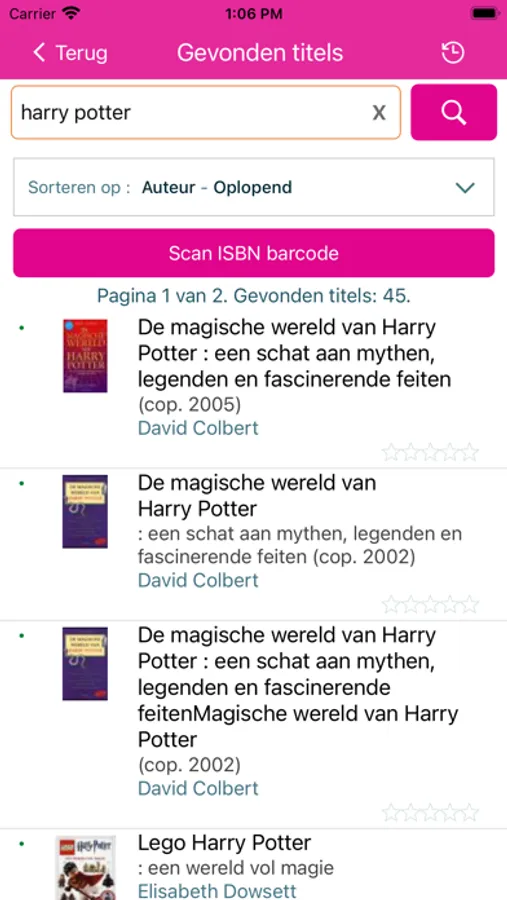 - zoeken op verschillende zoektermen: auteur, titel, ISBN