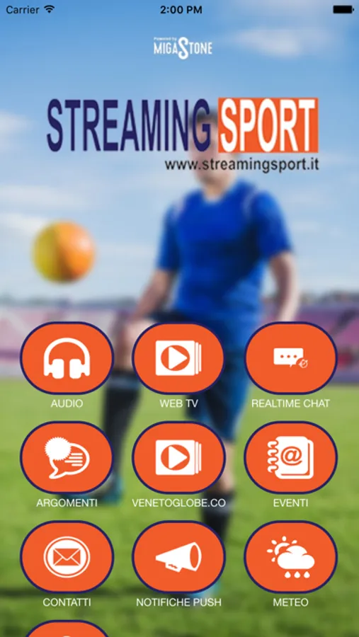 Streamingsport.it è la APP dello Sport in Streaming, dove puoi vedere e ascoltare in diretta attraverso i nostri canali i tuoi eventi sportivi preferiti dei seguenti sport: Atletica, Basket, Baseball, Calcio, Calcio a 5, Ciclismo, Football Americano, FootGolf, Motori, Pallamano, Pallavolo, Pugilato e Triathlon. Ogni settimana avrai accesso diretto a tutti gli eventi organizzati da Streaming Sport in anteprima e potrai attivare le tue categorie di interesse in modo da essere sempre aggiornato solo su quello che ti interessa di più!