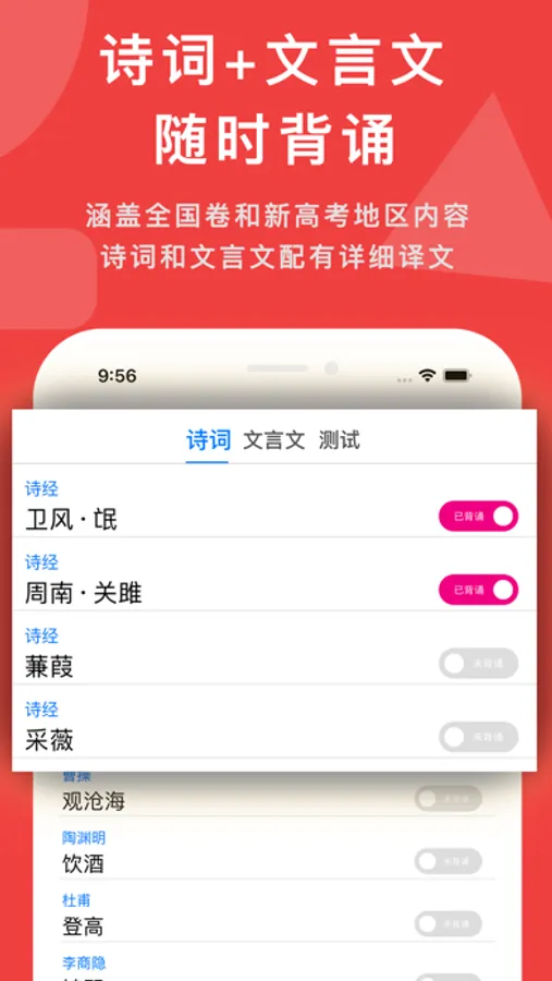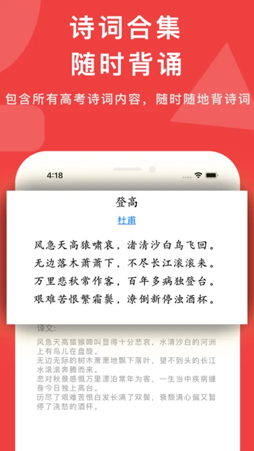 可以帮助所有高考生迅速查询和背诵有关诗词,是你做公交时,休闲时好助手。助你随时随地背单词。