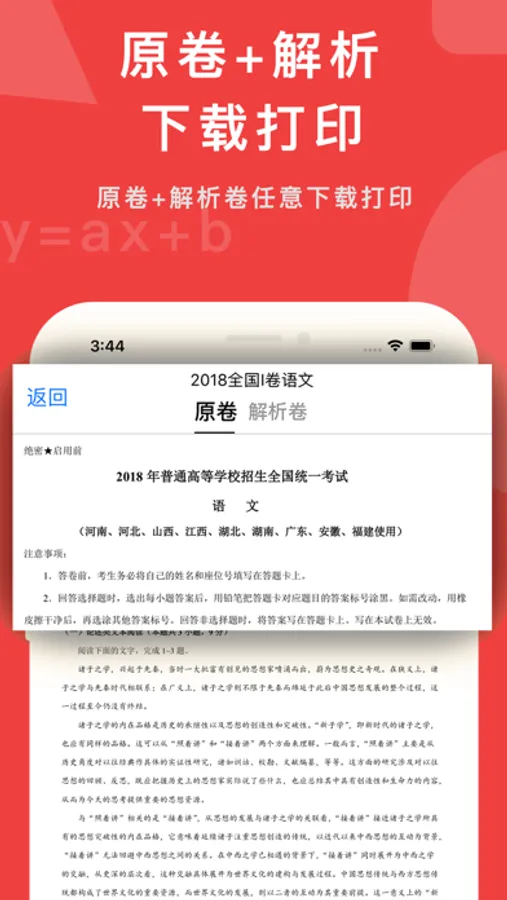 更有原卷用于下载和打印测试,高考解析卷和答案卷用于查看检查测试结果。