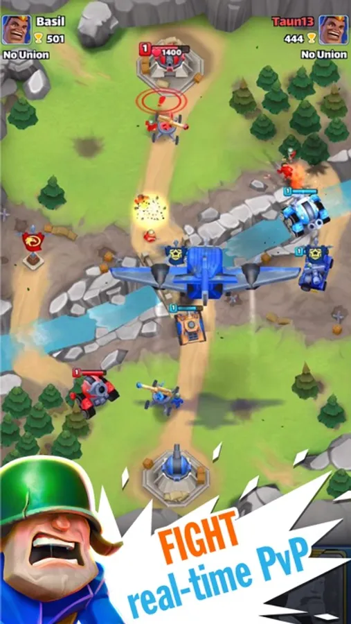 Destroy opponent's base and win in the greatest war of century! Collect cards to create a unique army of infantry and military machines. Find the best General for yourself - they give your troops special bonuses and help the soldiers when they need it most! Use tactic tricks: suppress the enemy by Plane Assault, paralyse it with Smokes or call Battleship Strike!