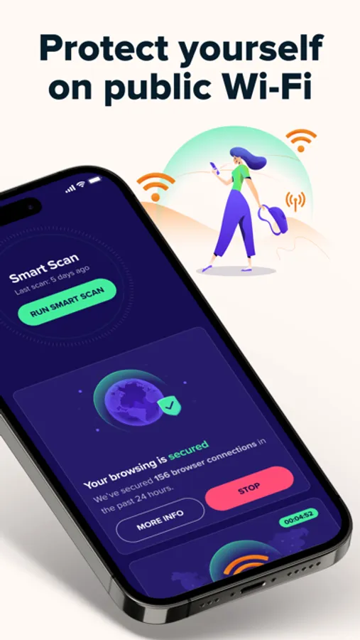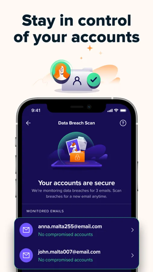 Protect your device from online threats and intruders, browse safely on public Wi-Fi, and stay in control of your online accounts.