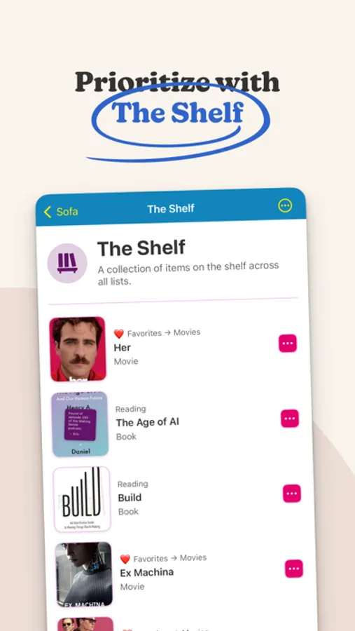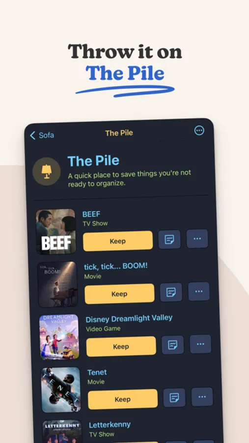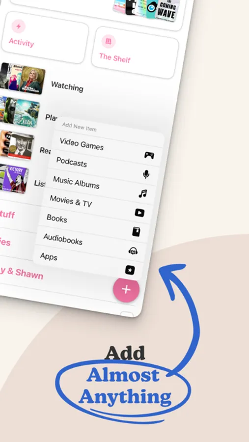 Create lists of books, movies, tv shows, podcasts, music albums, and video games to enjoy later.