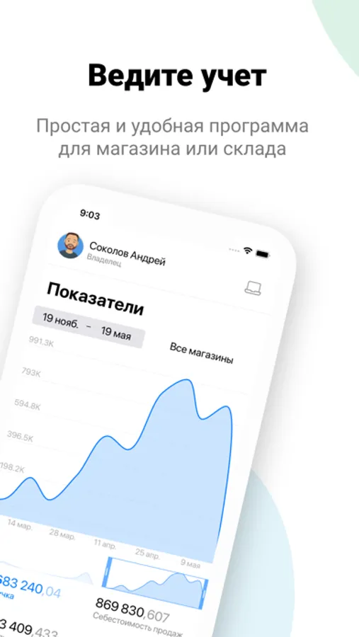 Cloud Shop - mobile trading. Your outlets will be equipped with a convenient program for the store. Sales through a barcode scanner, a customer base at hand, a cash register with a clear interface, data on income and expenses...