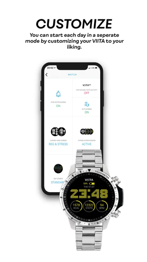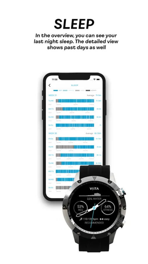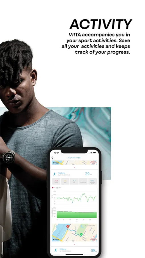 Your VIITA lets you track activities (speed, distance, time, heart rate and calories) for more than 20 sports.