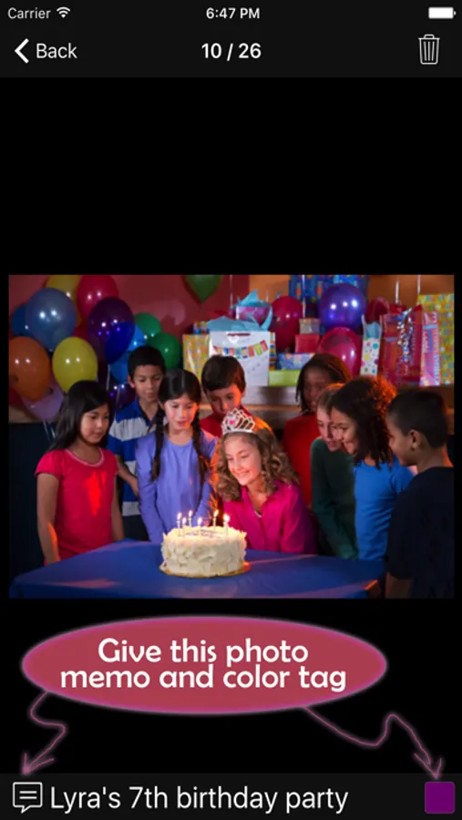 1) Give your photos/videos a text memo, also a color tag. With this app, you can easily find out your photo or video.