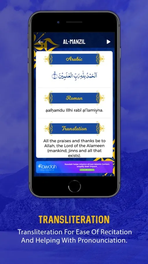 • Transliteration characteristic helps out the user in comprehending the real technique of pronouncing the consecrated verses.