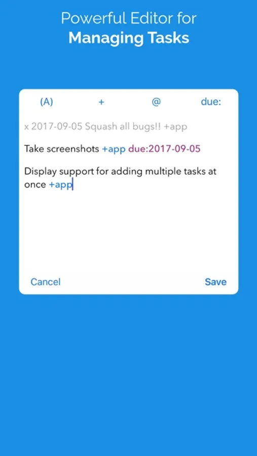 + Powerful editor lets you quickly create multiple tasks at once.