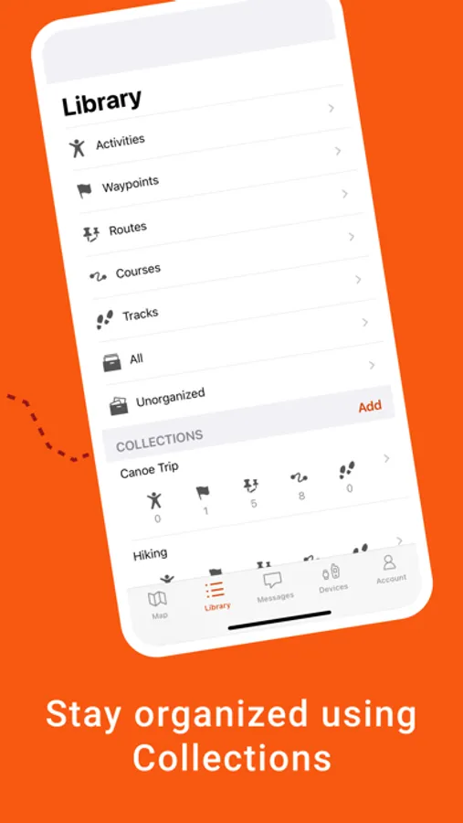 Review and edit your waypoints, tracks, routes and activities in your library. Add them to a collection to keep all the recorded data from a certain trip together in one place. For example, if you’re taking a long trip, you can plan different waypoints, tracks and routes for each day of the trip and combine them into one collection.