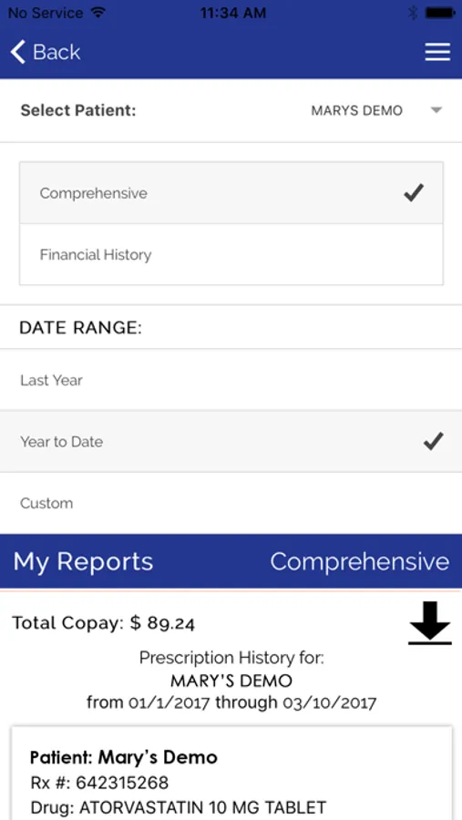 Using the Mary's Center Pharmacy iOS app, users can create and manage their online profile directly within the app. They can also refill prescription using the login or quick refill, view/print their prescription history, update their personal information, and create reminders.