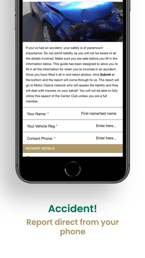 • Accident Report generator - our star feature allows you to record all the aspects of any accident you have been involved in, including uploading photos taken at the scene. As a member, your Accident Report will go straight through to our claims team to be handled straight away saving you all the hassle.