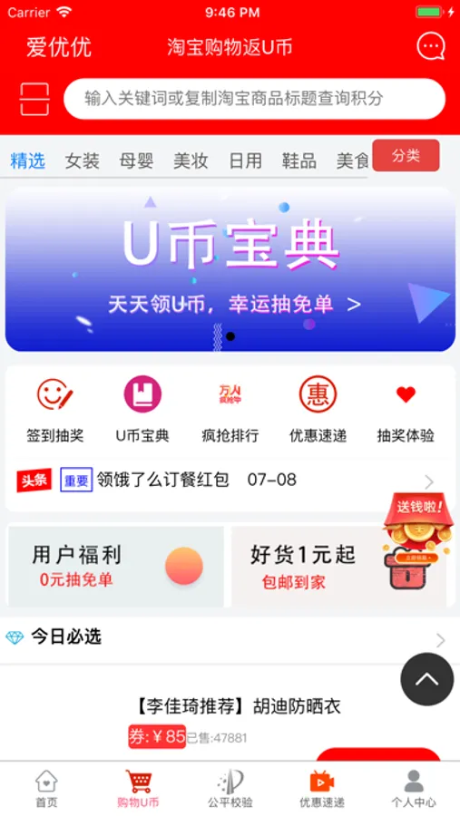 爱优优天天免单,让您的幸运为您买单!爱优优与各大电商网站合作,购物后抽取免单,超高的免单比例,国家专利公平抽奖无作弊。纯靠运气,快来爱优优选取您的幸运数字抽免单吧。还有今日运气,各种福利等着你哦!
