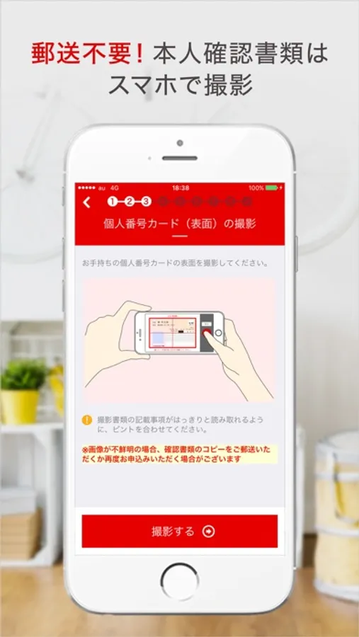 提出する本人確認書類はスマートフォンのカメラで撮影して送信するため、本人確認書類をご郵送いただく必要がなく、お手元に本人確認書類があればすぐに口座開設のお申込みを行うことができます。