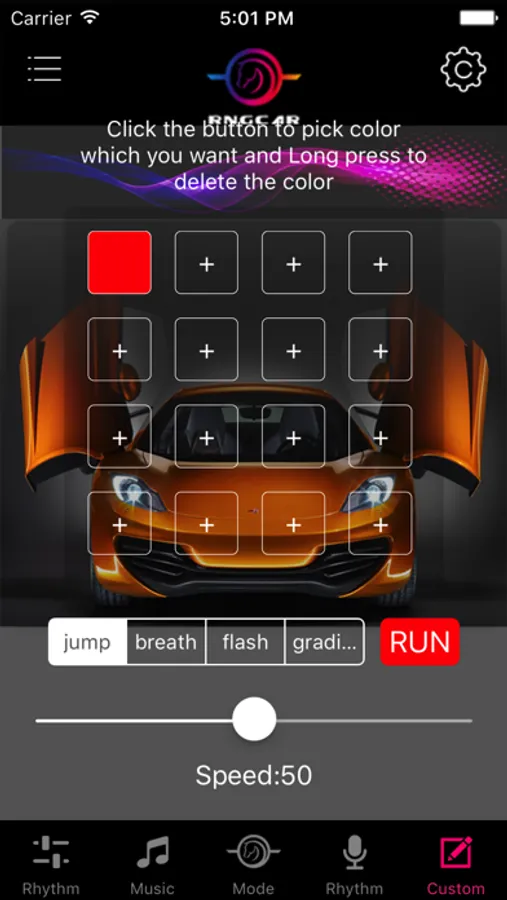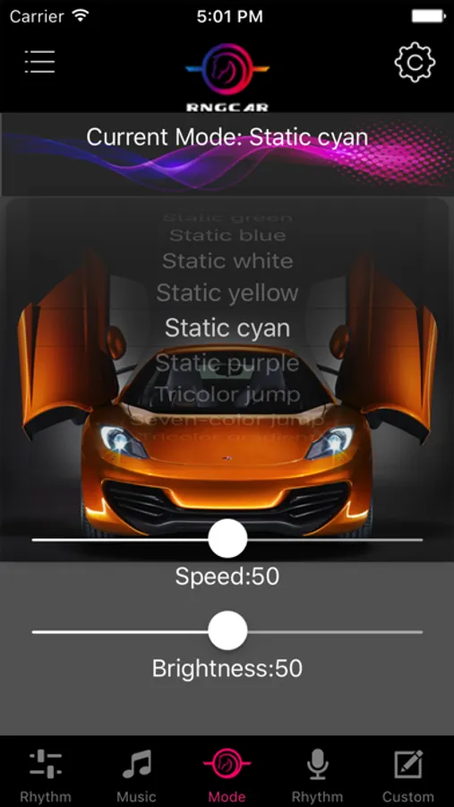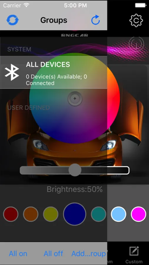 RNG CAR Bluetooth 4.0 is an intelligent LED control software, which supports RGB lighting control. It can control the light color, brightness, etc. music control ; DIY mode, custom mode, microphone and so on