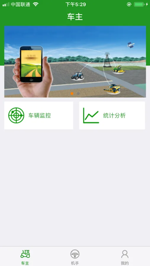 农机慧眼App支持车辆远程实时监控、作业监控、亩数时长统计、季度作业汇总、年度作业分析,车主和机手管理。