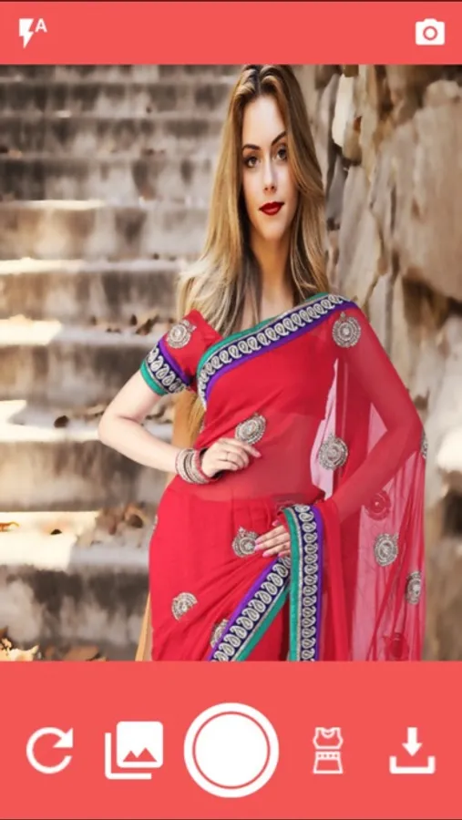 In this application you can try yourself out with different sarees by placing a beautiful sari on your image.