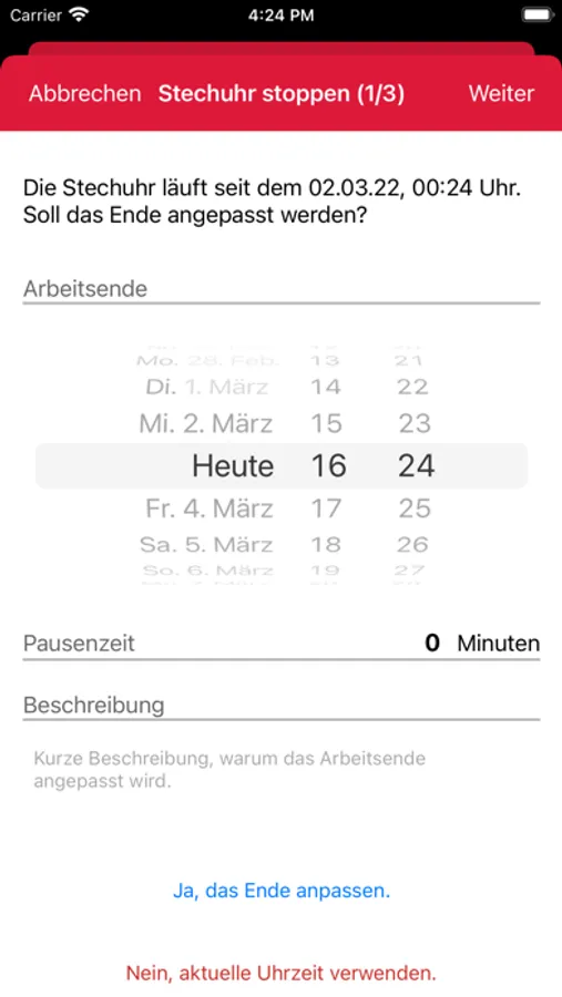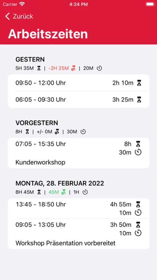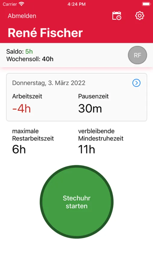 Mit dieser iOS-App können Sie und Ihre Praxis-Mitarbeiter Ihre Anfangs- und Endzeiten digital festhalten.