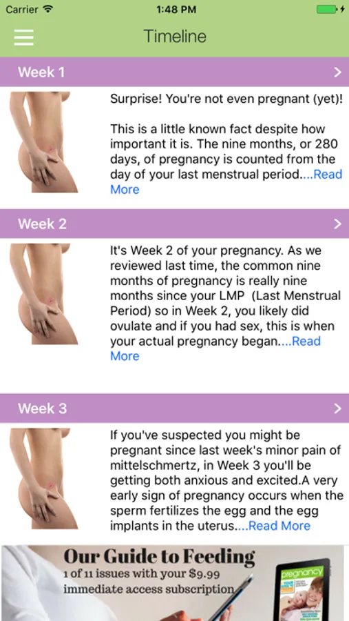 From a leading authority on pregnancy and infancy, Pregnancy Magazine’s “Your Pregnancy week by week” app gives you all the info you need to know in one place. You get beautiful full color images depicting the stage of growth of the new life growing inside you.