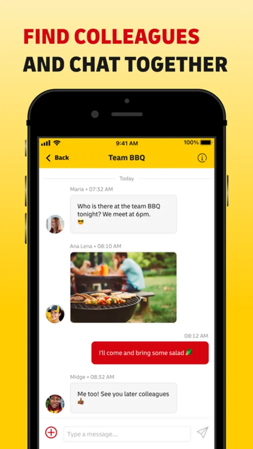 All employees can use the chat and social walls to connect with each other. The app invites everyone to explore new topics, engage with the content and share posts, pictures and videos throughout the organization.