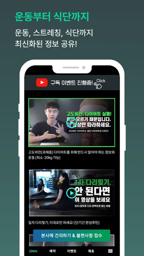 제로키니짐 그룹PT예약 서비스 및 다양한 운동, 식단관리 정보 제공