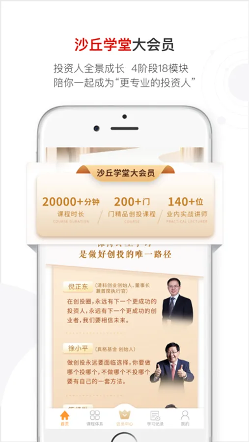 沙丘学堂投资学院,基础过程了,从VC/PE行业基础过程了,从四战基金能力实务、投资人成长了20个战基金能力实务、投资人的全部成长,构建了200课的全系列内容中,同时飞跃清科集团年创投行业团体学堂,推出二十个专业投资认证考试(PEPC行业专业PC认证考试),为新入职VC/PE机构快速打造入行敲门砖。