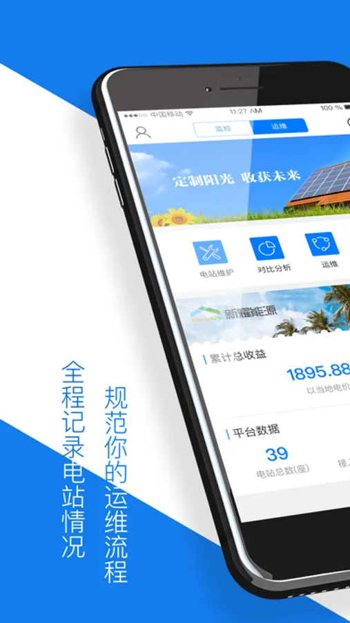 同时光伏小新APP支持移动运维,包括故障抢修、预防性维护、周计划管理、停电管理等。