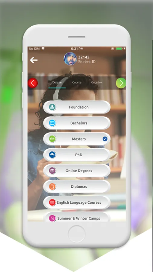 - The student will receive counseling in real time by live chat (audio, video, or chat messages) in English, Arabic, Russian, etc.