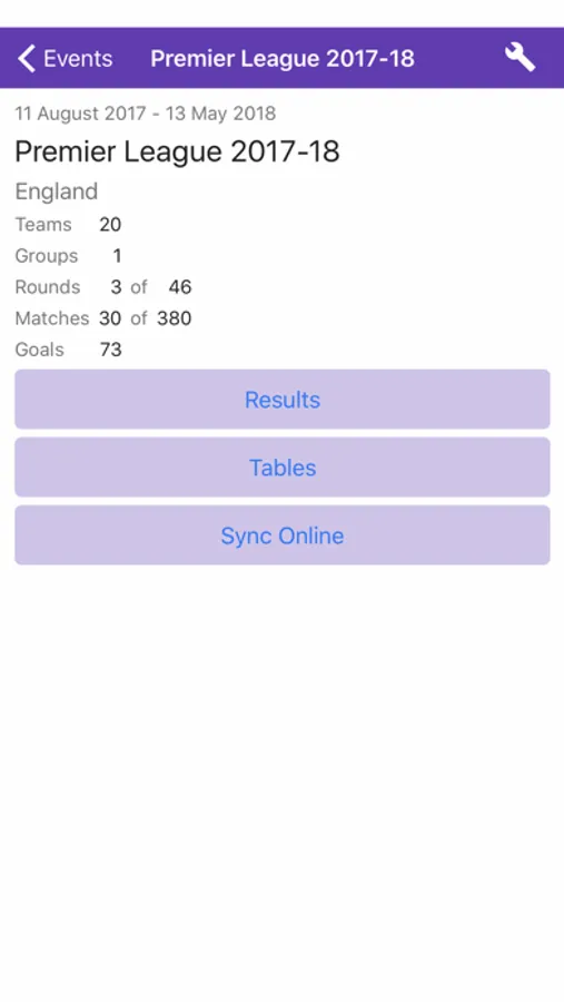Premier League youth event results and tables management application.