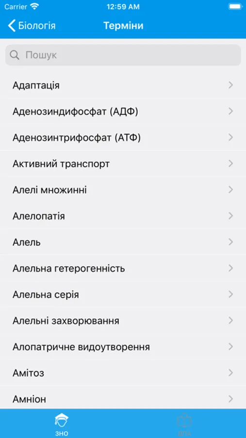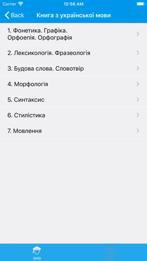 Структура програми дозволяє дуже легко знаходити потрібний Вам матеріал і готуватися більш продуктивно!