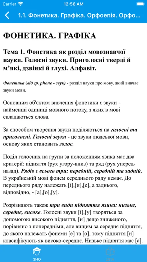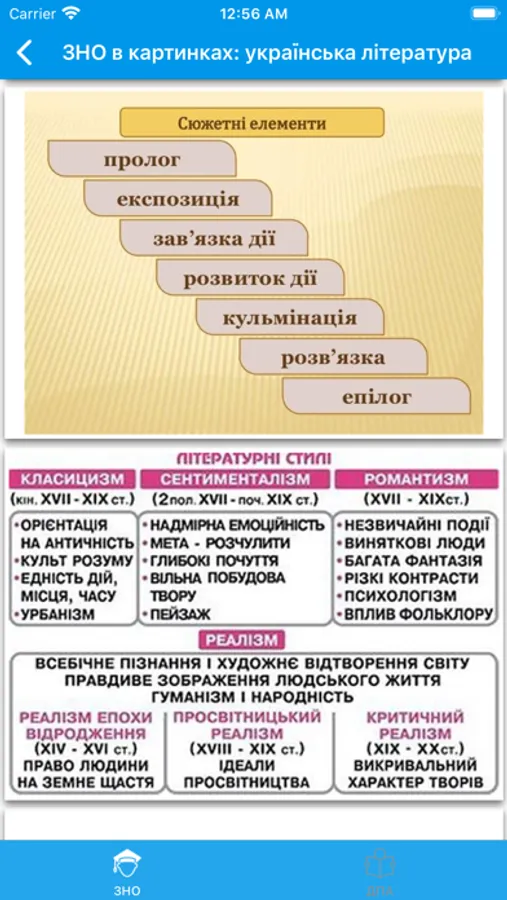 У нашому додатку міститься величезна кількість теоретичних і практичних матеріалів для підготовки до ЗНО з більшості предметів + ТЕСТУВАННЯ.