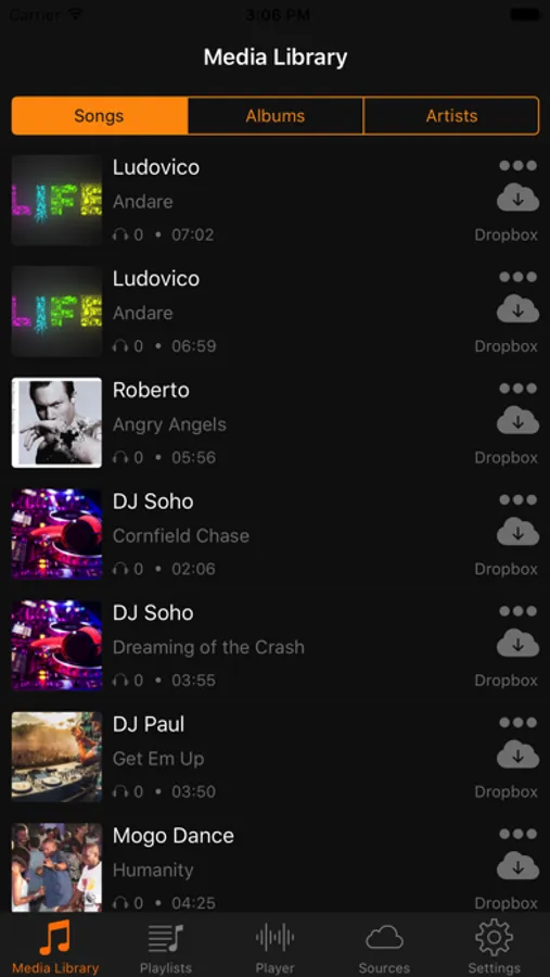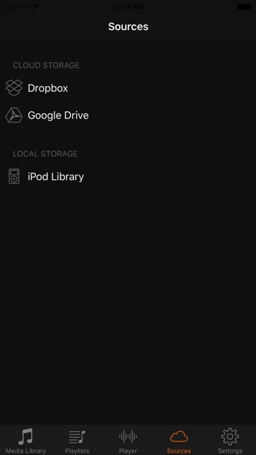 1. On the tab 'Sources' choose the cloud platform Google Drive, Dropbox or iPod Libary.