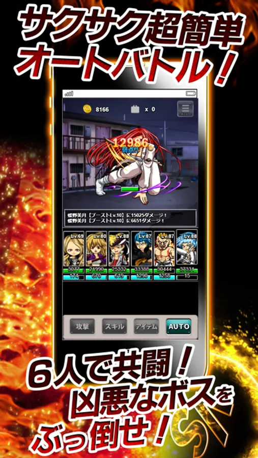 喧嘩バトルに勝利して経験値を積み、自分とキャラをレベルアップさせよう!オートバトル機能搭載でサクサク簡単!