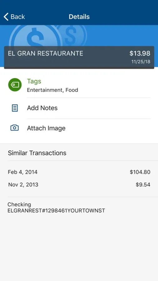 Add Tags, Notes, Images & Geo-Information: By enhancing transactions with custom tags, notes or photos of a receipt or check, you have the ability to stay organized and find exactly what you’re looking for when searching through your finances.