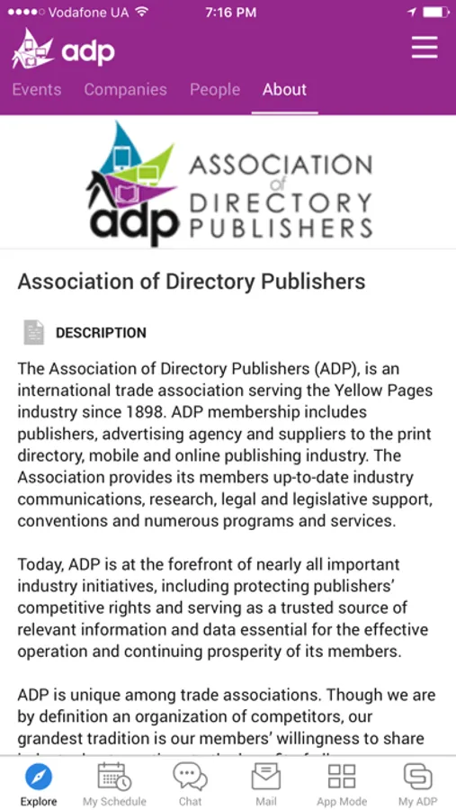 The Association of Directory Publishers (ADP), is an international trade association that provides its members up-to-date industry communications, research, legal and legislative support, conventions and numerous programs and services.