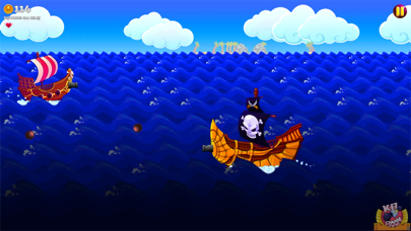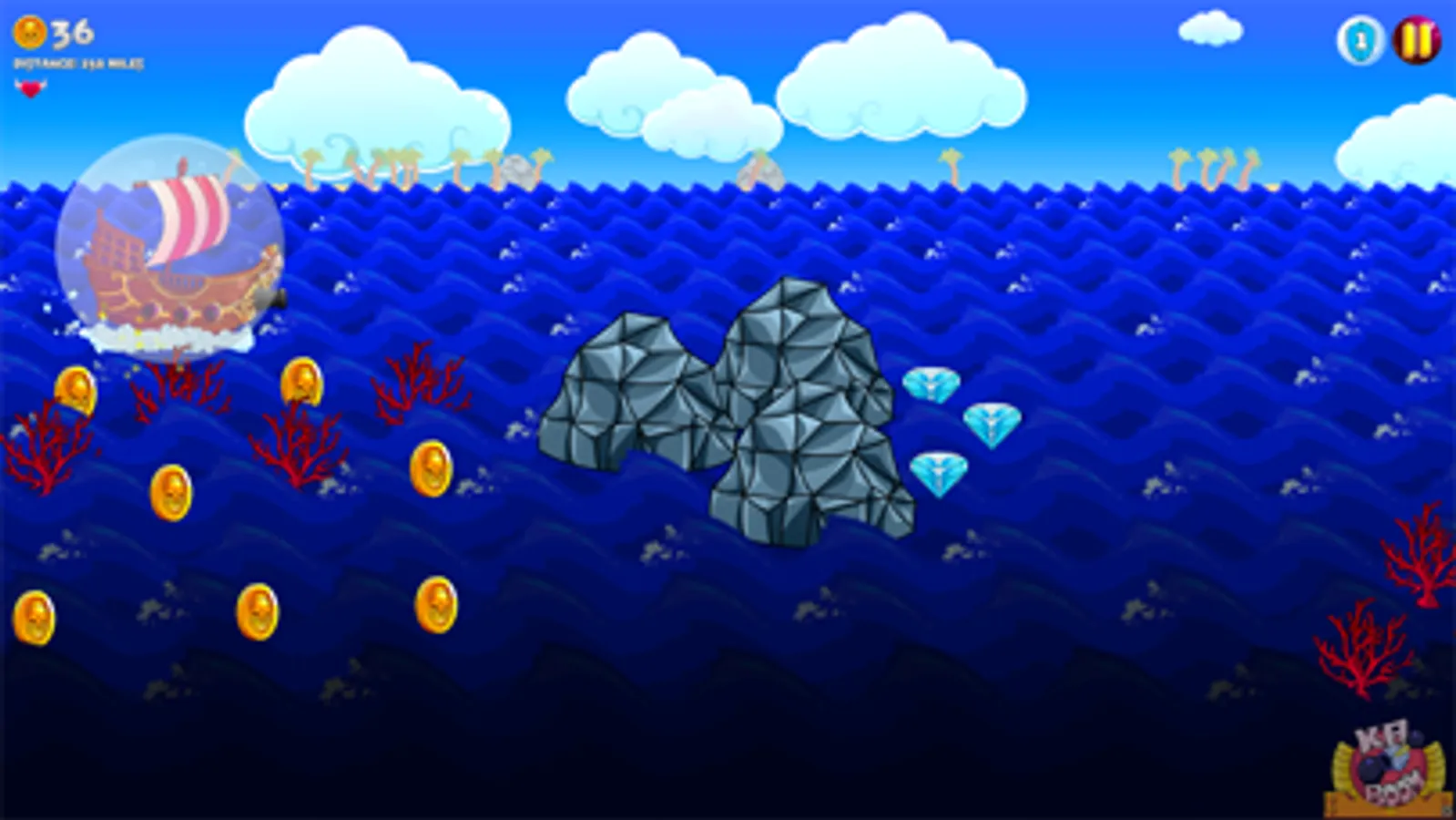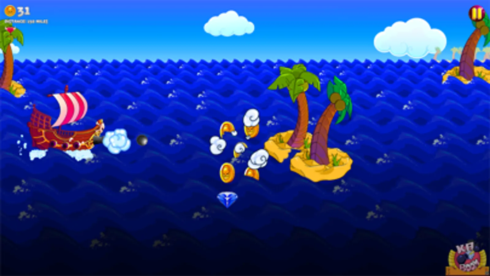 Ahoy, welcome to the greatest pirate adventure! Help Laffy, the young wannabe pirate, to go as far as possible in the Caribbean seas aboard his fast ship. Get as many doubloons, gems, and pirate treasures, and improve your ship in the buccaneer shop. Buy cannons to defend yourself, engines to increase the speed and hit points of the ship, and other upgrades that will help you reach great distances.