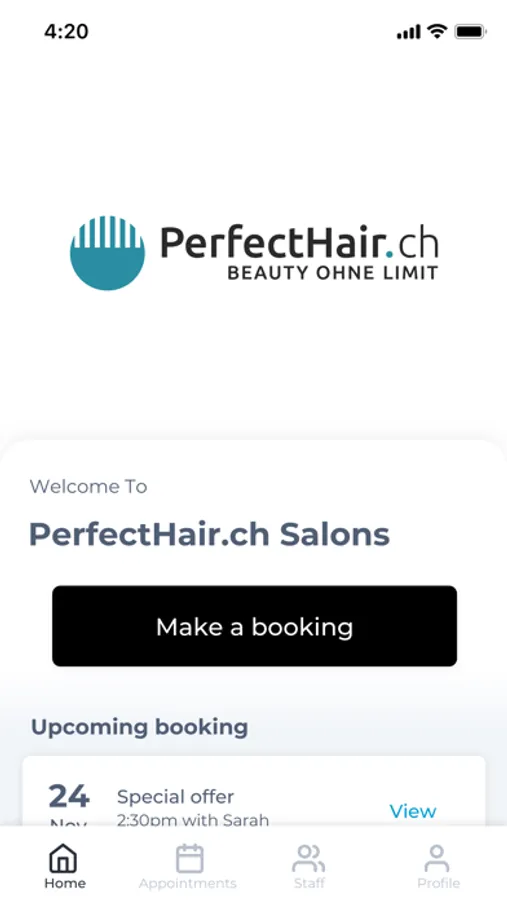 The PerfectHair.ch Salons app makes booking your appointments and managing your loyalty points even easier. You're just a few taps away from feeling good and looking great!