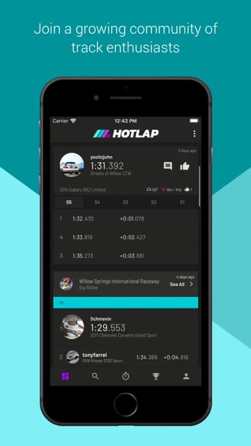 Hotlap is an exciting new community for track day enthusiasts. With intuitive GPS lap timing and data logging you can ealiy compare your performance with fellow drivers to achieve your next personal best.