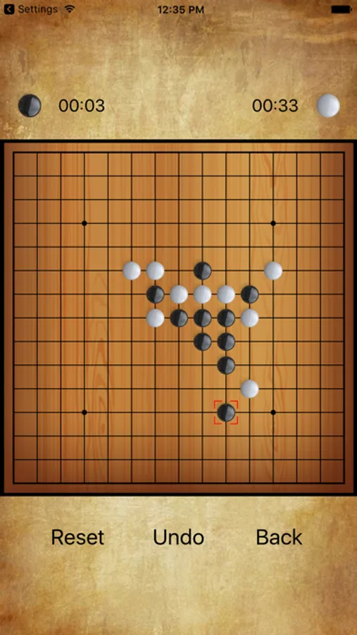 Players alternate turns placing a stone of their color on an empty intersection. The winner is the first player to form an unbroken chain of five stones horizontally, vertically, or diagonally.