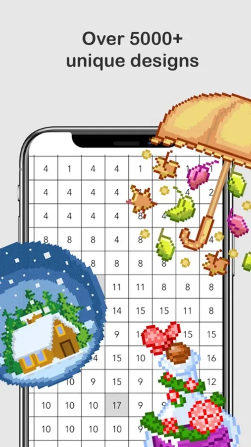 Whether you are looking to relax or getting in touch with your inner artistic self. Pixel Color offers many categories and beautiful images to color. Each pixel art is carefully designed with the best color choices for the artwork. Just select the number in the color palette and color the corresponding box in the image to bring the pixel art to life. You will be able to see your own creation in a video and share with families and friends.
