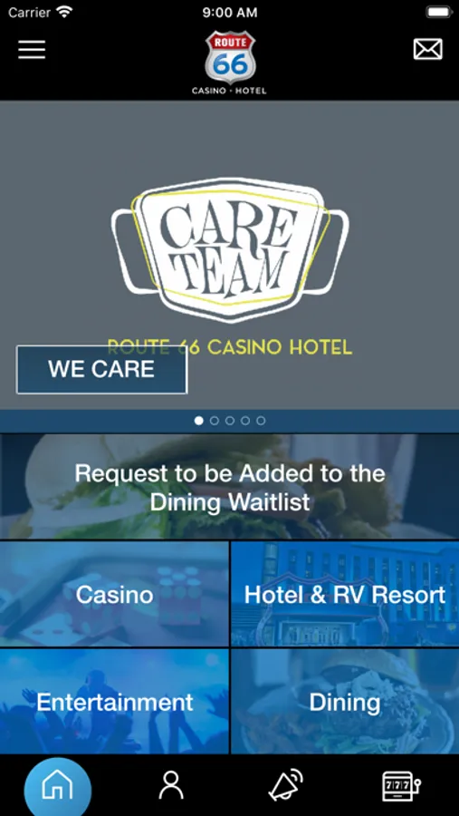 Browse through all five of our restaurants and three lounges, view menus, hours of operation and see the latest dining specials. DIRECTIONS No matter where you’re coming from, our app makes it easy to get step-by-step GPS navigation direction to Route 66 Casino. LOCATION SERVICES