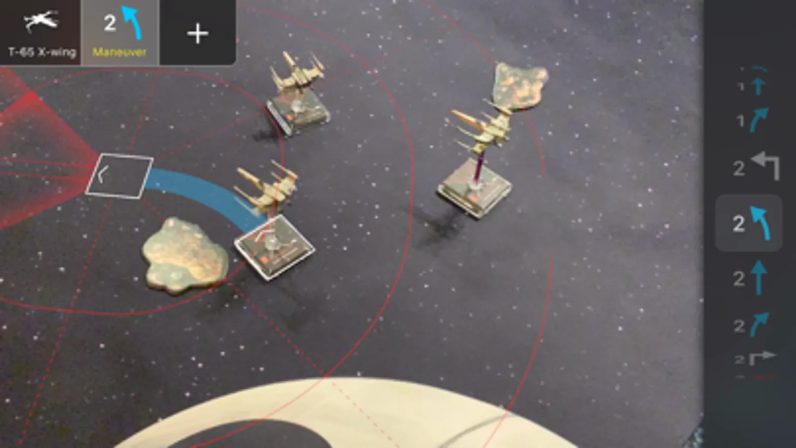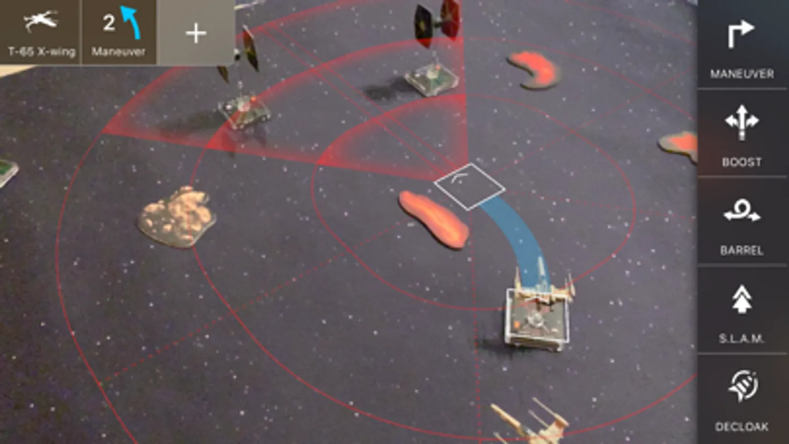 Preview maneuvers for the X-Wing Miniatures Game directly in augmented reality on your iOS device. See which maneuver to use to avoid collisions. Visualize a ship's firing range and where it will be positioned after executing the selected maneuver, boost, barrel roll, SLAM, or decloak.