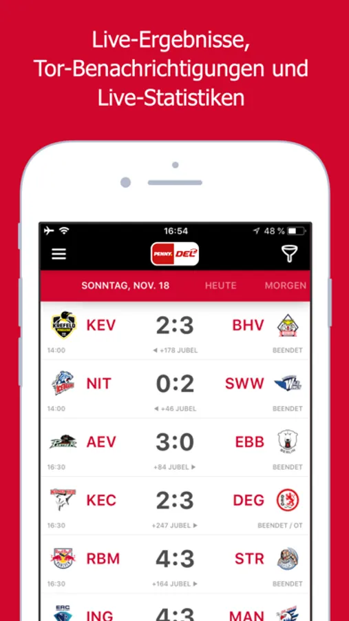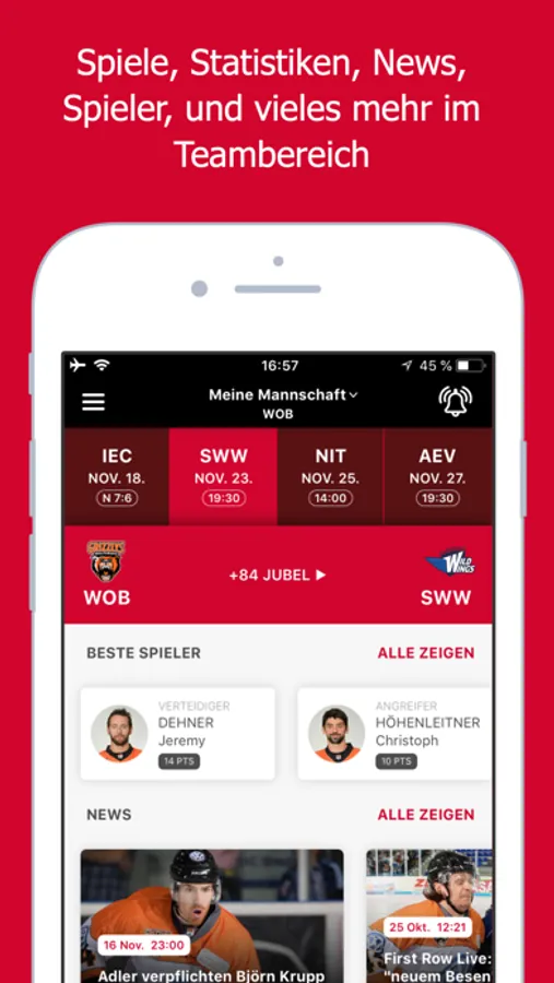Genieß Live Statistiken samt Pushnachrichten, visualisierte Aufstellungen und viele weitere Statistiken rund um die Spiele. Du willst wissen, wie sich dein Team schlägt? Schau dir den mein Team Bereich an, hier siehst Du alle Statistiken, die nächsten Spiele und besten Spieler deines Teams. Du interessierst Dich für Spielerdaten? Jetzt siehst Du nicht nur aktuelle Spielerstatistiken, sondern auch deren Karrierestatistiken, die beste Saisonleistung und ein Spielerprofil mit Foto.